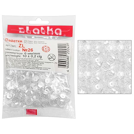 Пайетки декоративные " Zlatka " 10г 6мм, прозрачные, голографический эффект, пакет, европодвес