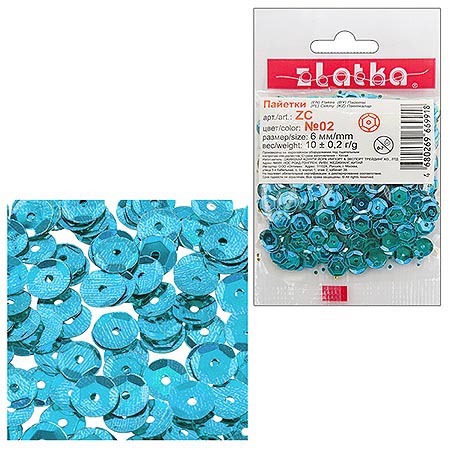 Пайетки декоративные " Zlatka " 10г*6мм бирюзовые