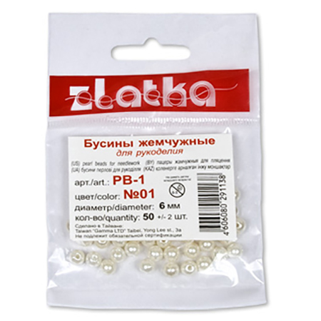 Набор бусин " Zlatka " №01 6мм*50шт, белые