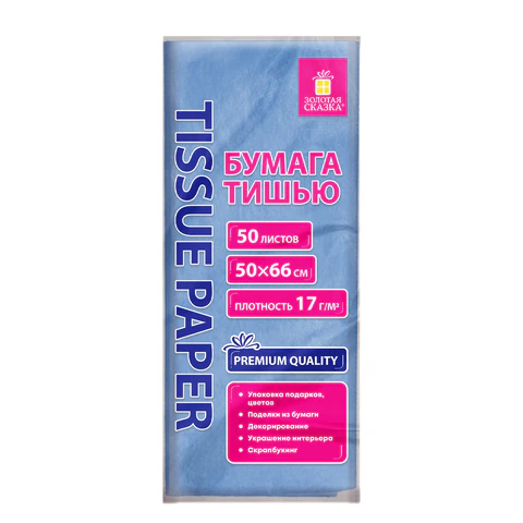 Цветная бумага ТИШЬЮ 17г/м2, 50х66см, 50 листов пастель голубой, ЗОЛОТАЯ СКАЗКА, 116486