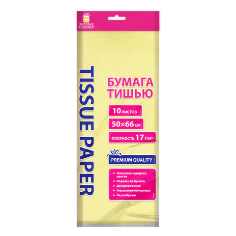 Цветная бумага ТИШЬЮ 17г/м2, 50х66см, 10 листов цвет белый, ЗОЛОТАЯ СКАЗКА, 116483