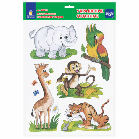 Украшение для окон и стекла ЗОЛОТАЯ СКАЗКА "Забавные зверюшки 1", 25,8х33,5 см, ПВХ, 591235