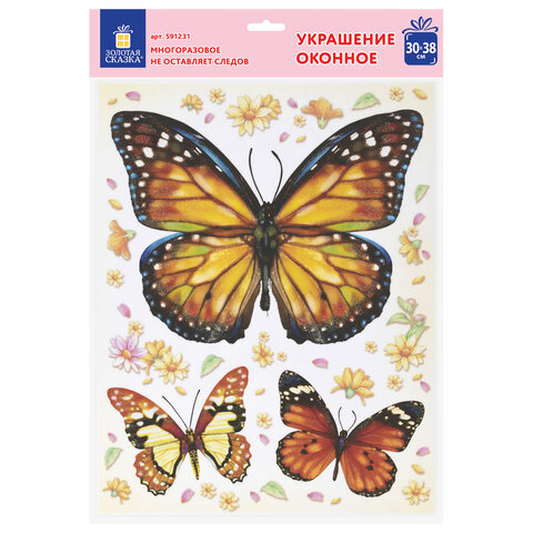 Украшение для окон и стекла ЗОЛОТАЯ СКАЗКА "Бабочки 1", 30х38 см, ПВХ, 591231