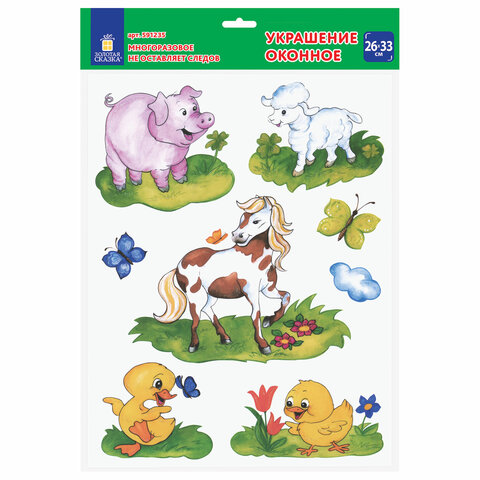 Украшение для окон и стекла ЗОЛОТАЯ СКАЗКА "Забавные зверюшки 3", 25,8х33,5 см, ПВХ, 591237
