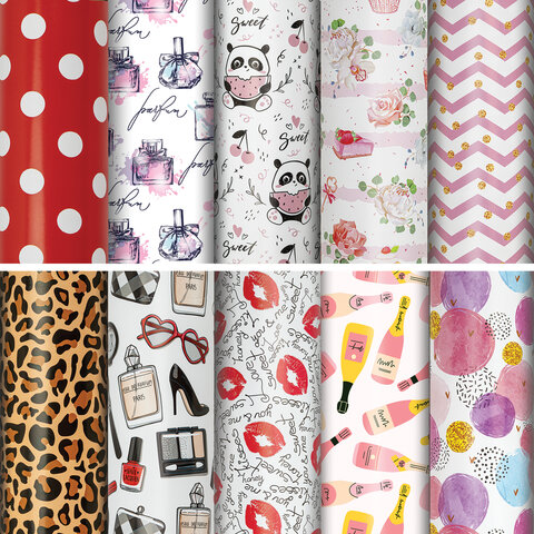 Бумага упаковочная подарочная мелованная "For Women", 70x100 см, 10 дизайнов ассорти, ЗОЛОТАЯ СКАЗКА, 591915