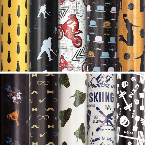 Бумага упаковочная подарочная мелованная "For Men", 70x100 см, 10 дизайнов ассорти, ЗОЛОТАЯ СКАЗКА, 591914