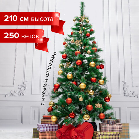Ель новогодняя искусственная "Пушистая" 210 см, с инеем и шишками, зеленая, ЗОЛОТАЯ СКАЗКА, 592046