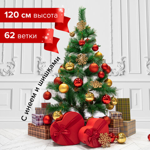 Ель новогодняя искусственная "Пушистая" 120 см, с инеем и шишками, зеленая, ЗОЛОТАЯ СКАЗКА, 592043