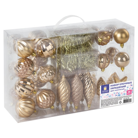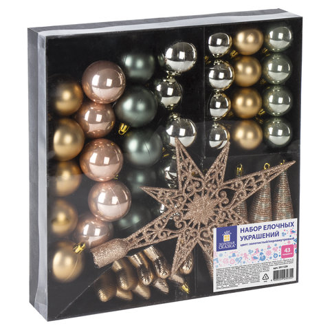 Шары елочные НАБОР 54 предмета "Light Champagne Style ", пластик, шампань, ЗОЛОТАЯ СКАЗКА, 592592