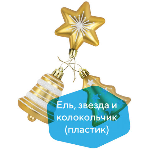 Набор украшений для ели ЗОЛОТАЯ СКАЗКА "Ель, звезда, колокольчик", 3 шт., пластик, золото, 591115