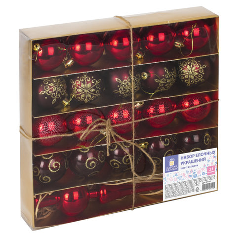 Шары новогодние ёлочные "Red Wine" НАБОР 21 предмет, пластик, красный, ЗОЛОТАЯ СКАЗКА, 591107