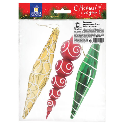 Набор украшений для ели ЗОЛОТАЯ СКАЗКА "Фигурные сосульки", 3 шт., пластик, ассорти, 591114