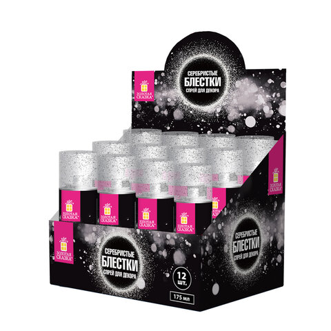 Блёстки для декора в спрее СЕРЕБРИСТЫЕ, 175 мл, ЗОЛОТАЯ СКАЗКА, 592284