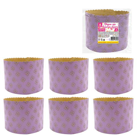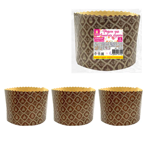 Форма бумажная для выпечки пасхального кулича "Выпечка" КОМПЛЕКТ 6шт, 7х8,5см, ЗОЛОТАЯ СКАЗКА, 592660