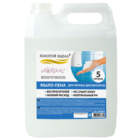 Мыло-пена для специальных диспенсеров 5 л ЗОЛОТОЙ ИДЕАЛ "Жемчужное", 605907