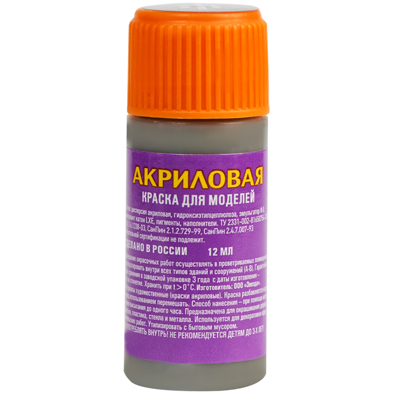 Краска акриловая ZVEZDA "Серая", 12мл, флакон