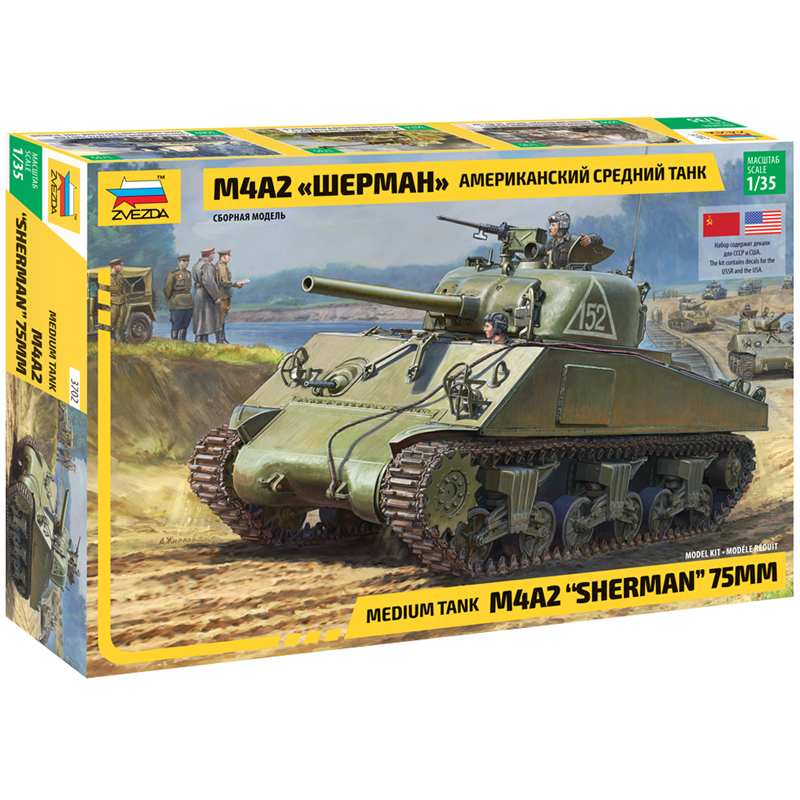 УЦЕНКА-Модель для сборки ZVEZDA "Американский средний танк М4А2 Шерман", масштаб 1:35