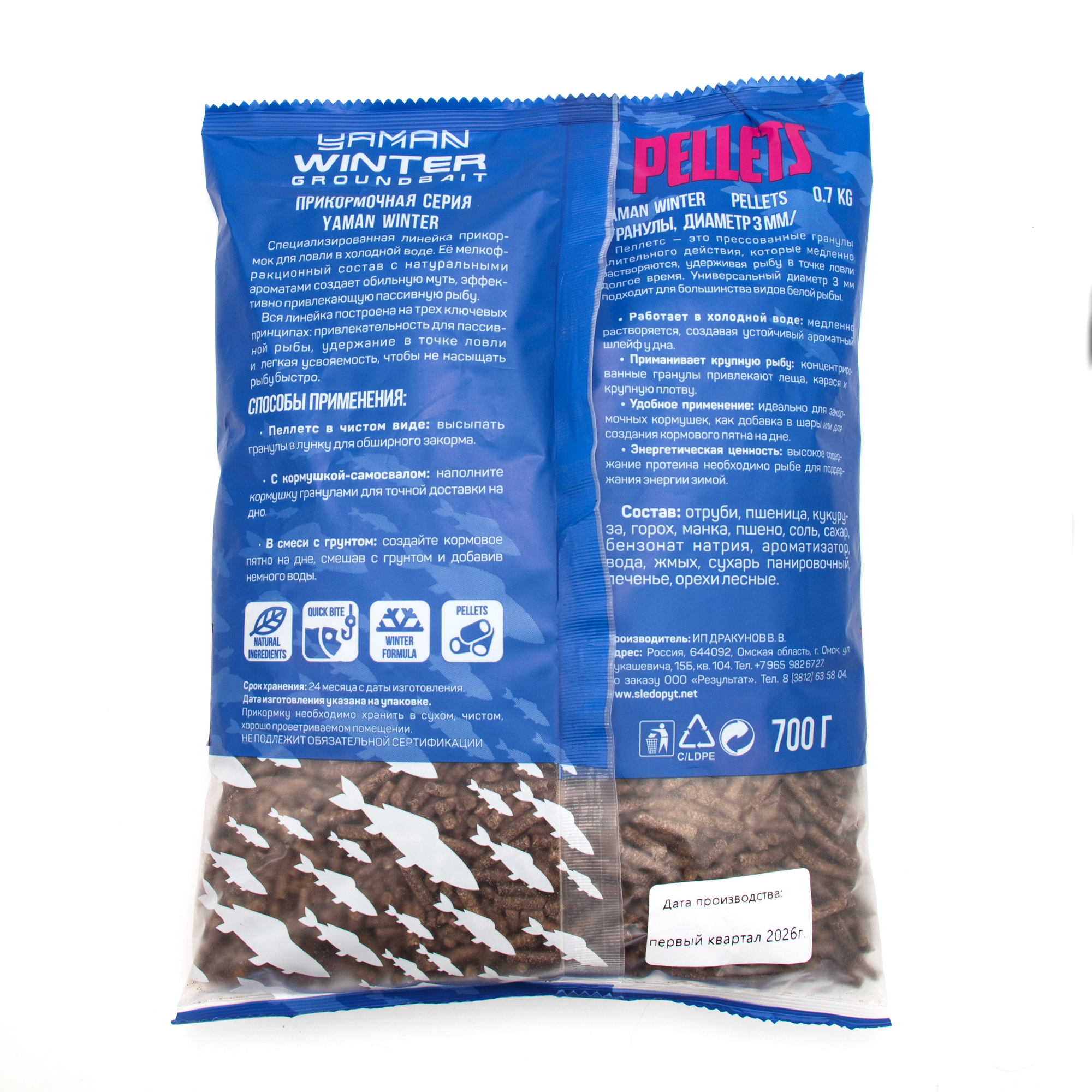 Прикормка Yaman Winter Pellets Crucian ice зимняя (карась лед), 700 г/20/