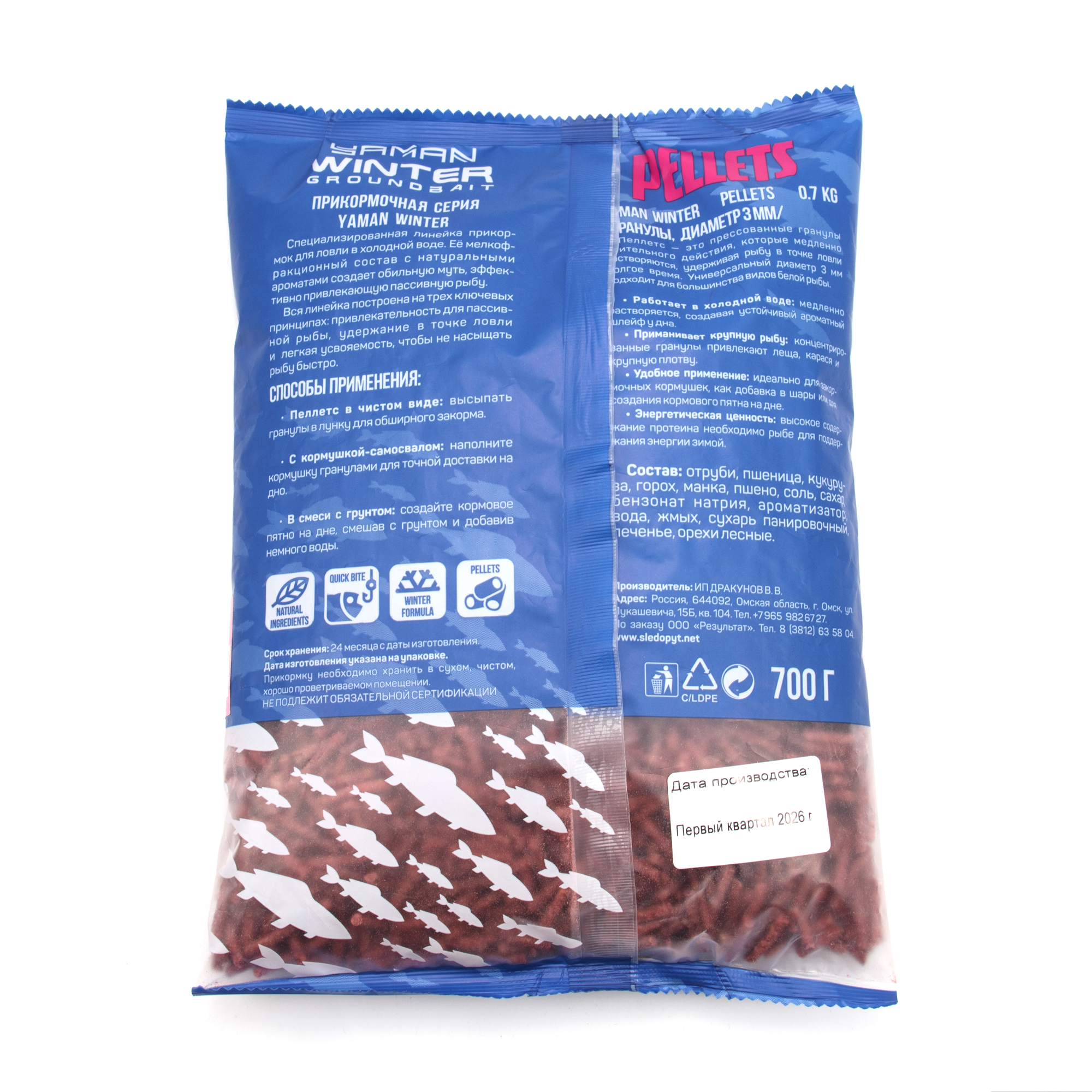 Прикормка Yaman Winter Pellets Crucian ice зимняя (карась лед), 700 г/20/