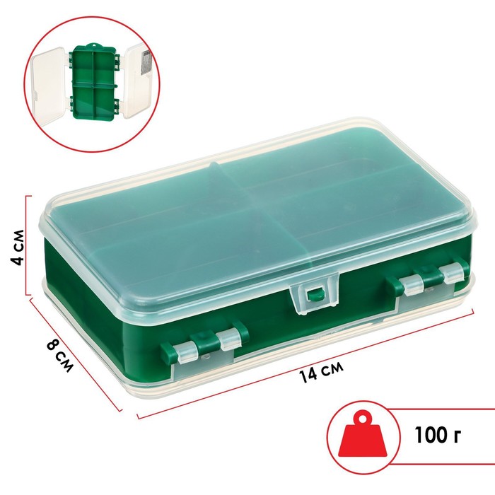 Коробочка для оснастки Helios двухсторонняя, 14 х 8 x 4 см, зелёная