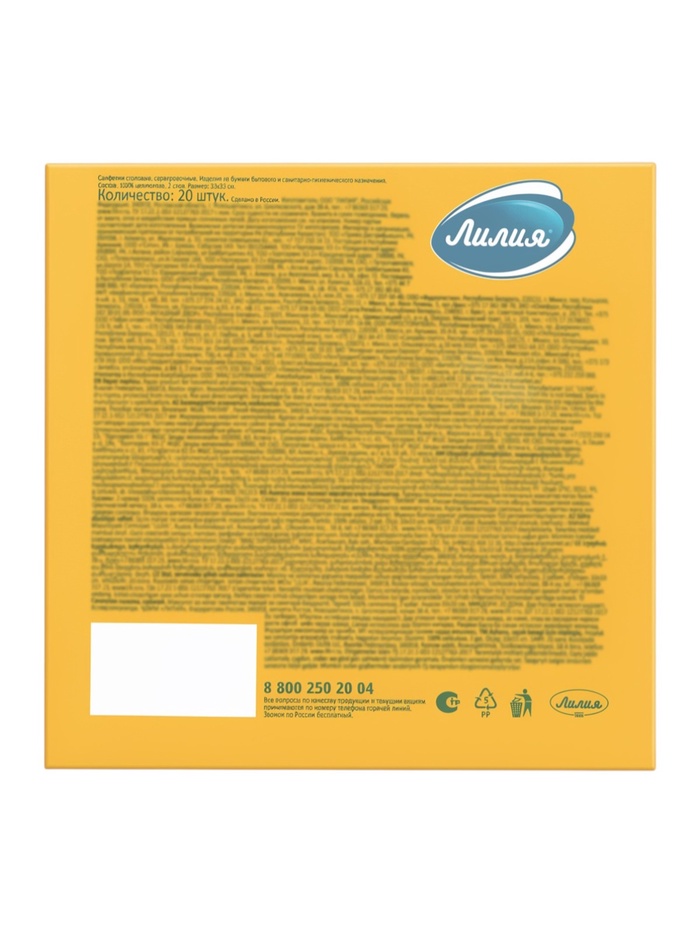 Салфетки бумажные, Лилия 33×33 «Оранжевый» 2сл 20 л