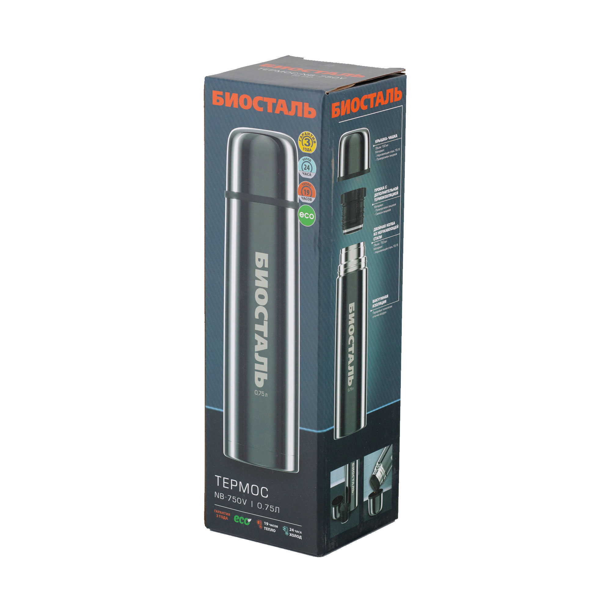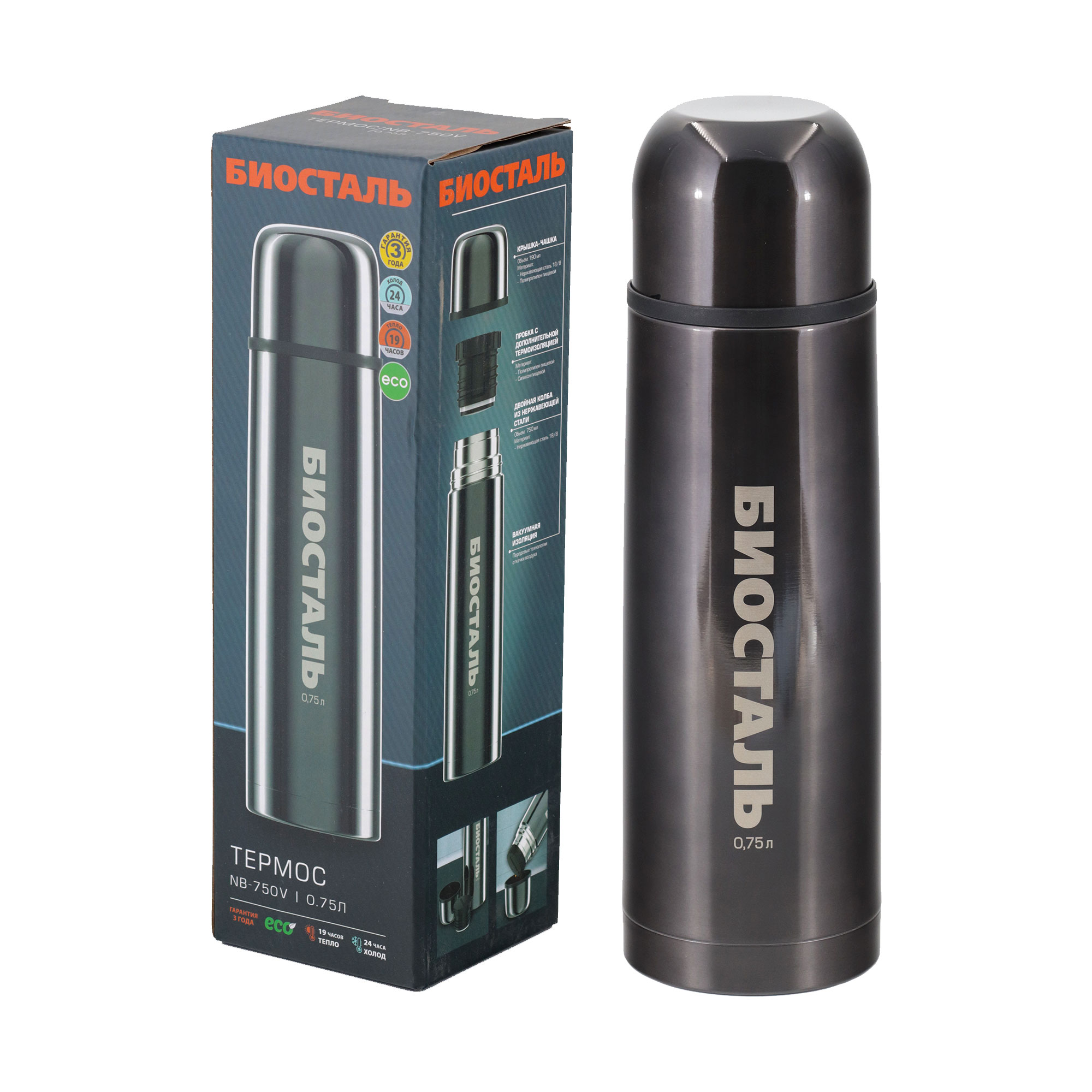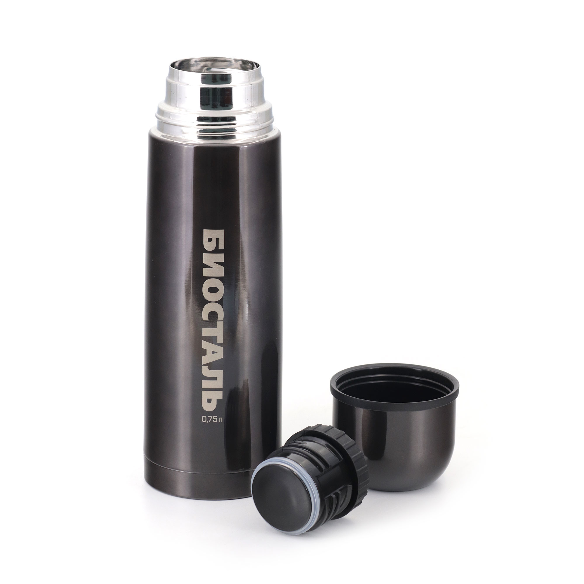 Термос "Биосталь" с узкой горловиной, цв. вороненая сталь, 0,75 л /12/