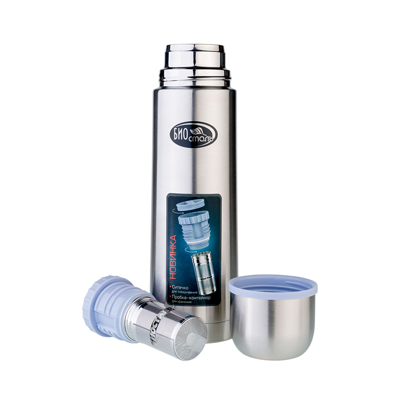 Термос "Биосталь" с узкой горловиной и пробкой с ситечком, 0,75 л /12/