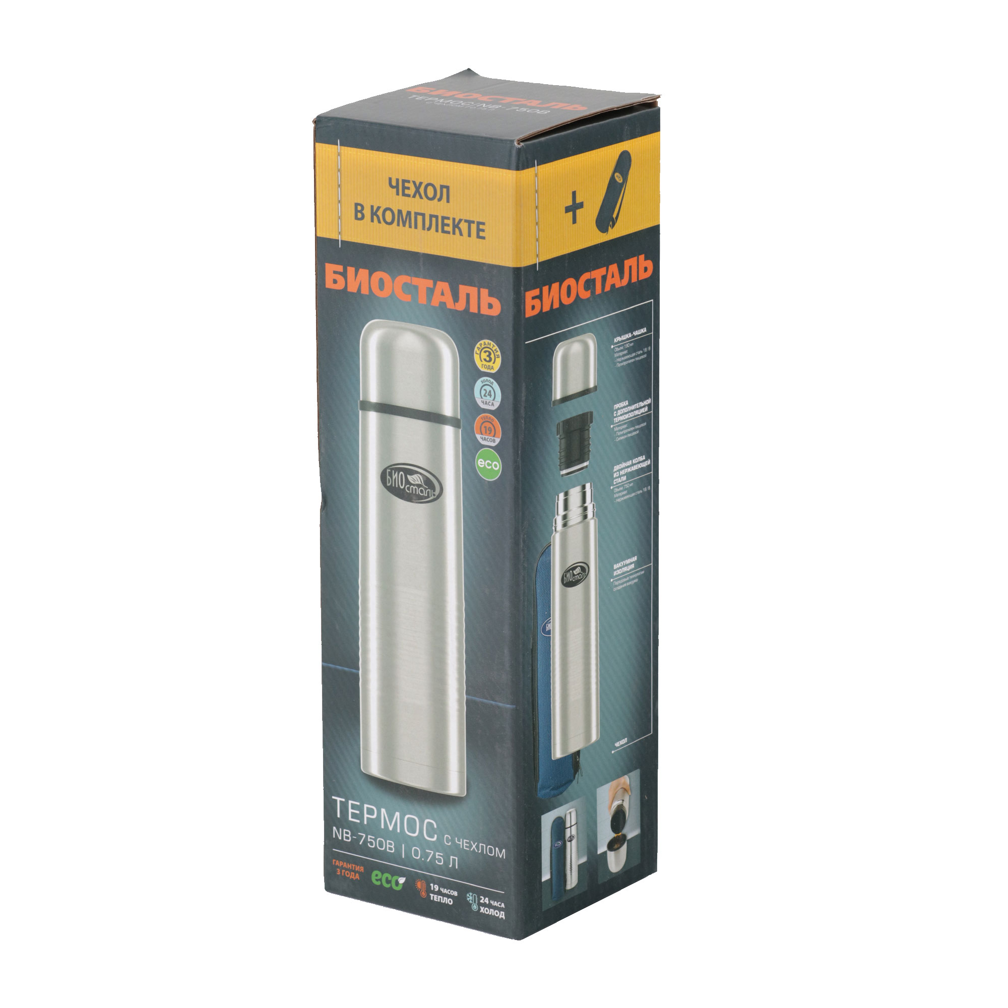 Термос "Биосталь" с узкой горловиной, 0,75 л, в чехле/12/