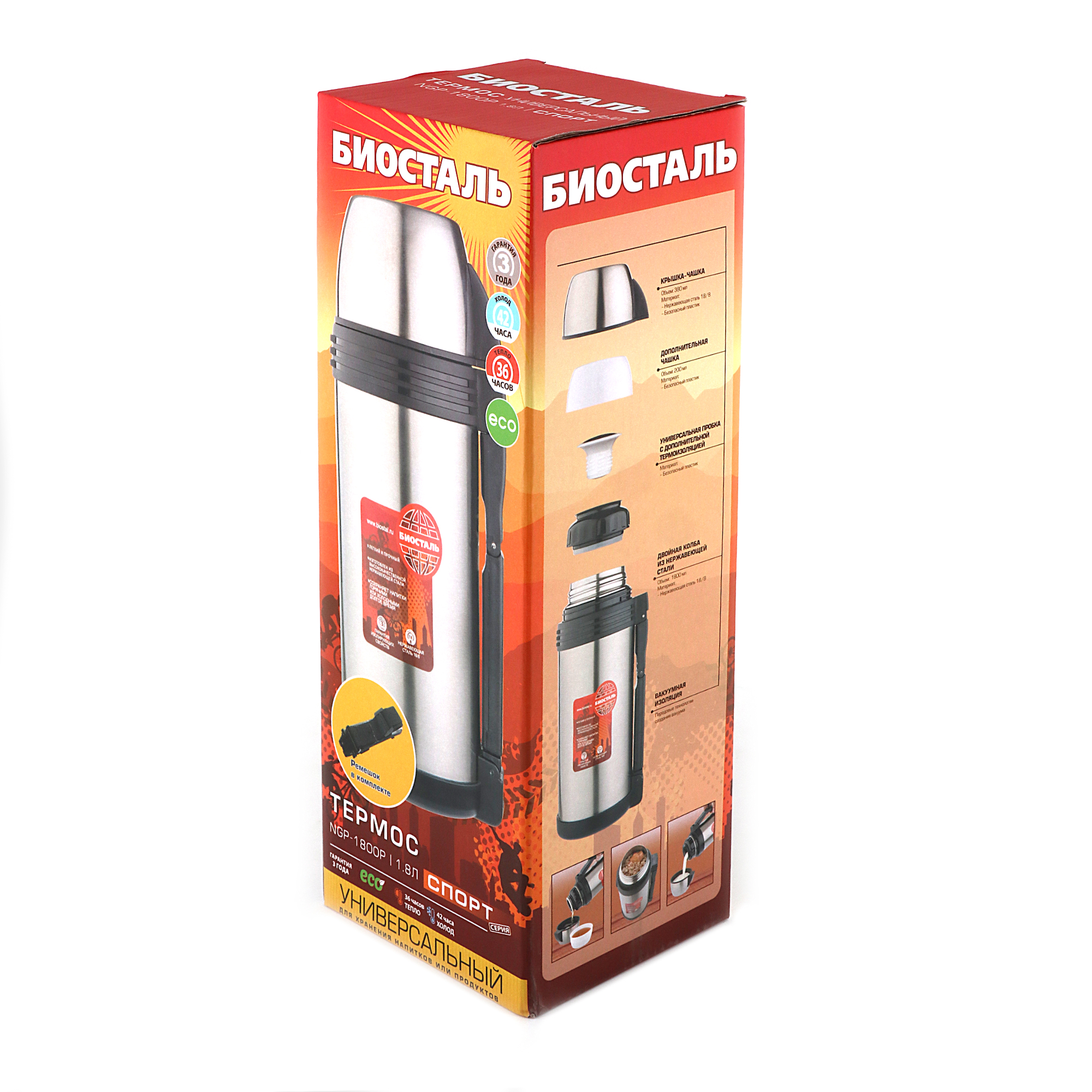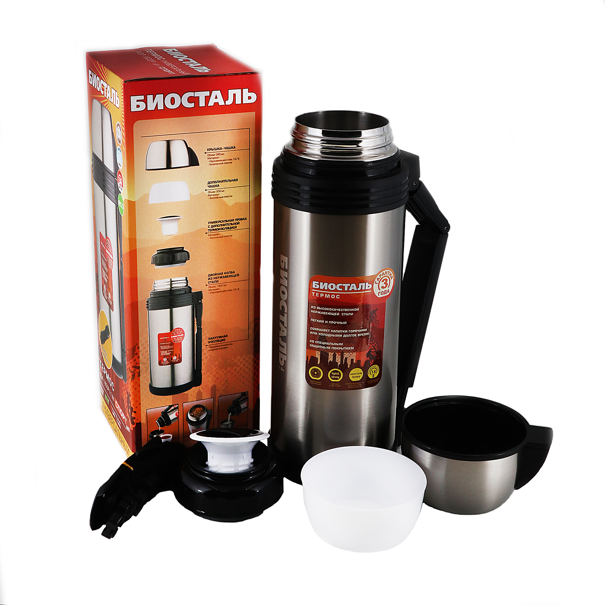 Термос "Биосталь-СПОРТ" универсальный с ручкой, 1,8 л/12/