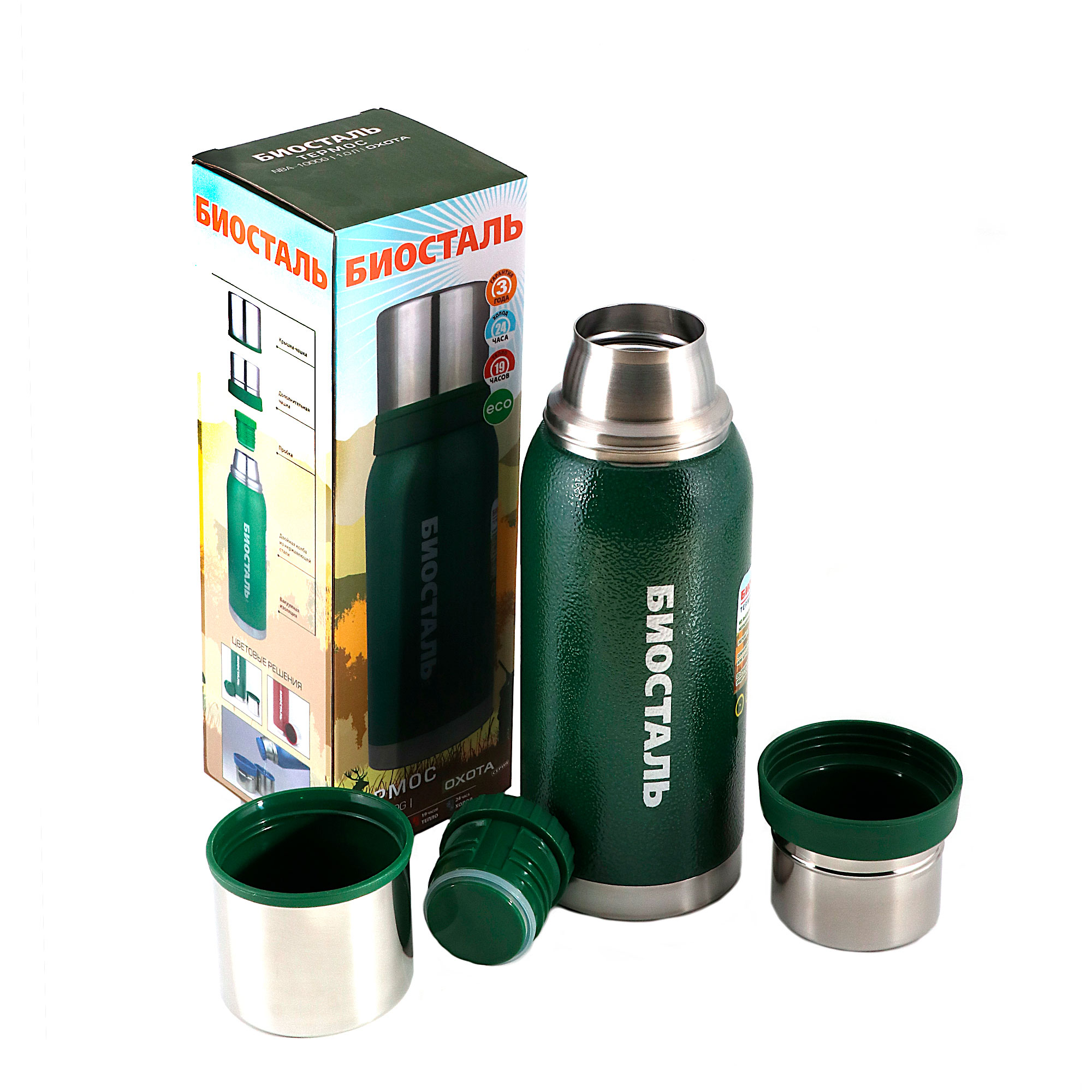 Термос "Биосталь-ОХОТА" с узкой горловиной, 2 чашки, 0,75 л/12/