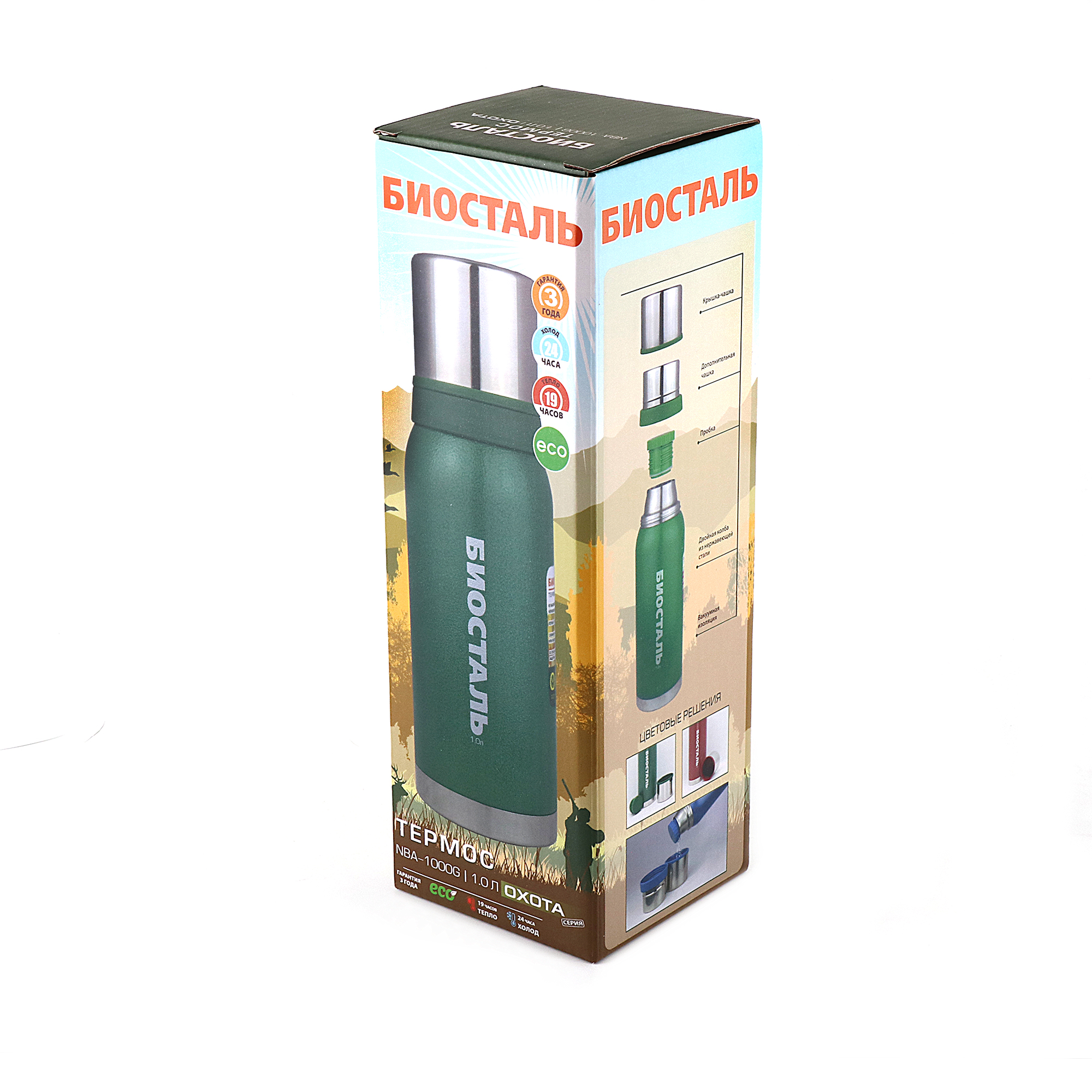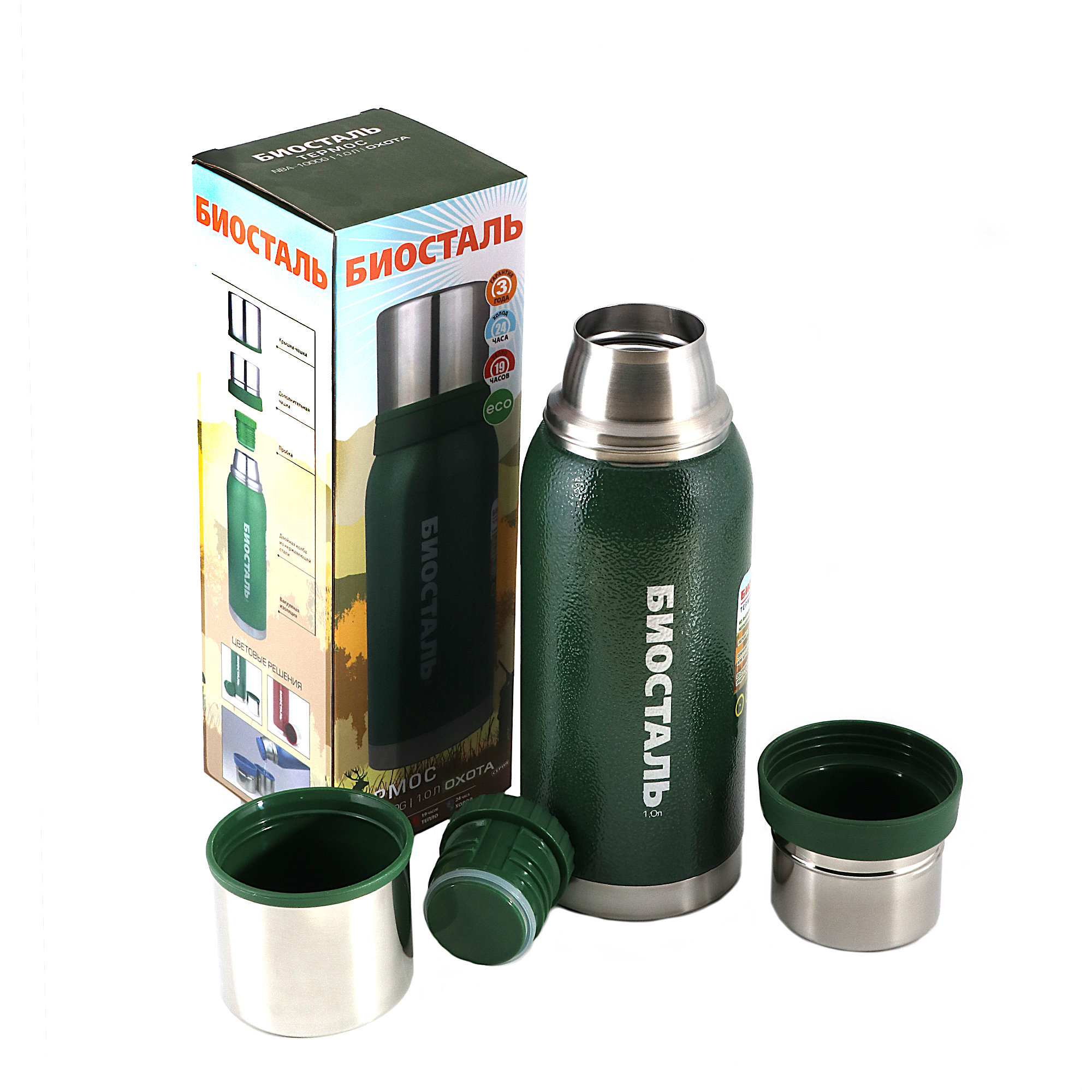 Термос "Биосталь-ОХОТА" с узкой горловиной, 2 чашки, 1,0 л/12/