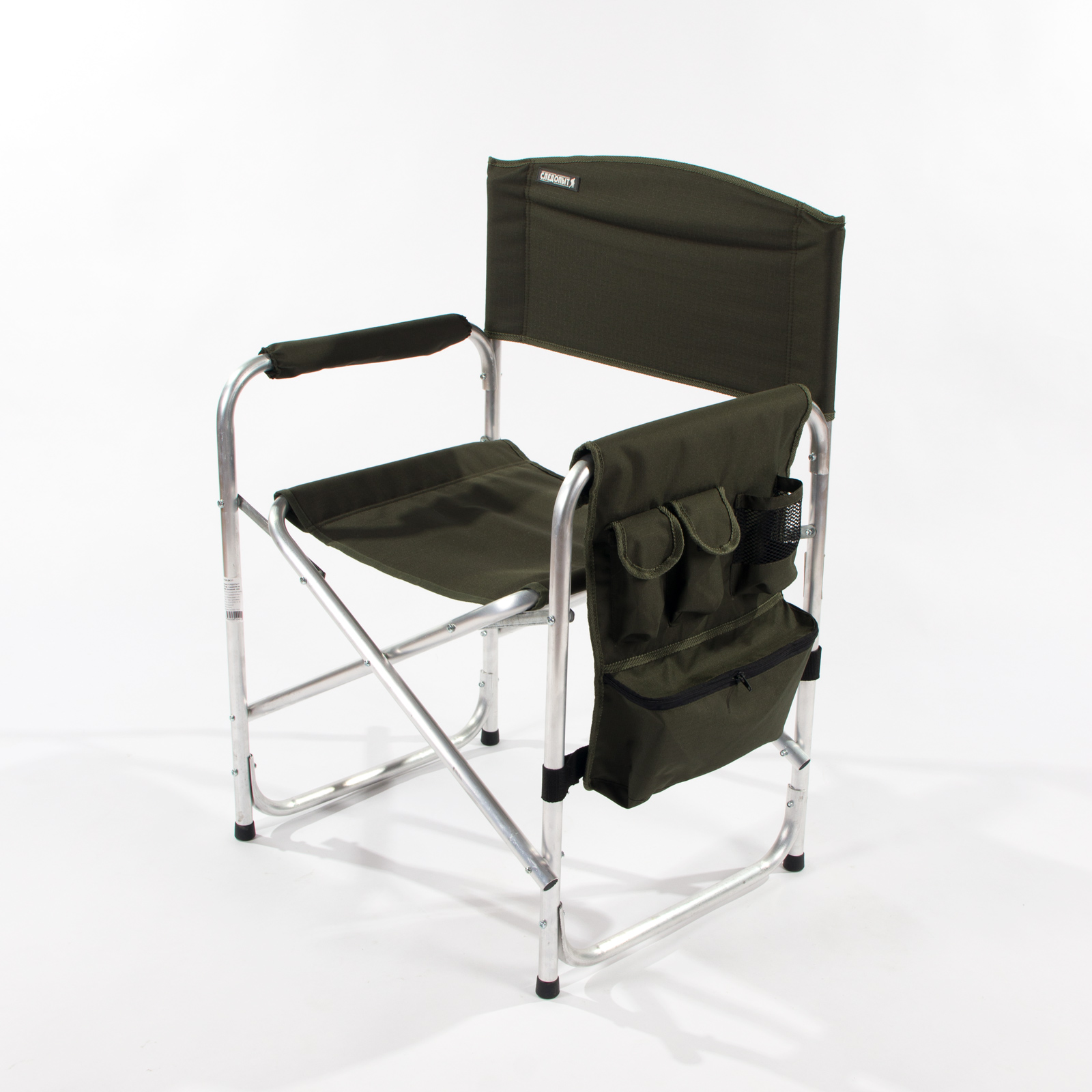 Кресло складное "СЛЕДОПЫТ" 585х450х825 мм, с карманом на подлокотнике, алюминий, хаки