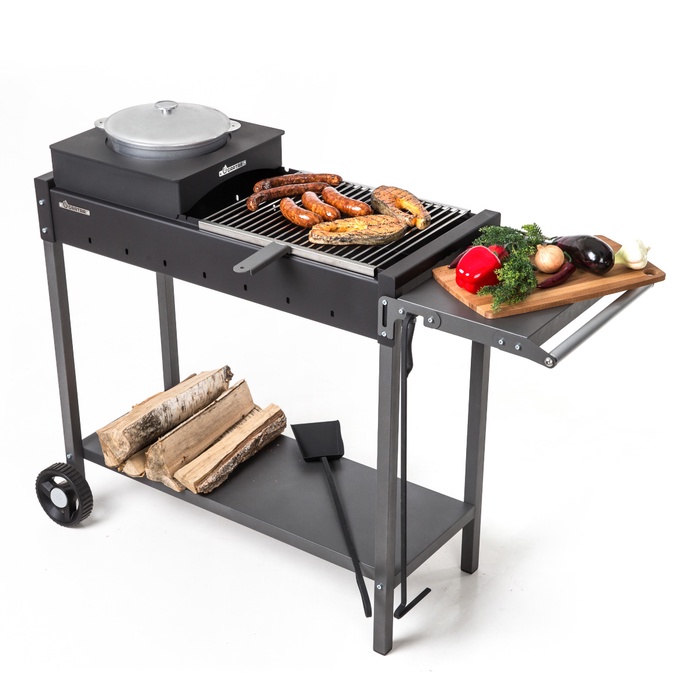 Мангал «МАН 302», 131,5 × 52 × 79,7 см, 3 мм, колёса, боковая полка