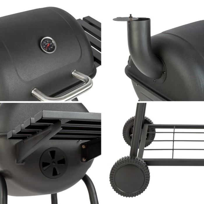 Мангал «МАН 303», 153.5×52×90.1 см, 3 мм, колеса, боковые полки, крышка