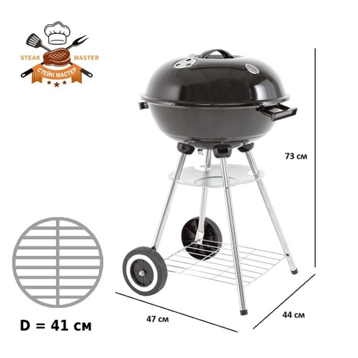 Мангал «МАН 303», 153.5×52×90.1 см, 3 мм, колеса, боковые полки, крышка