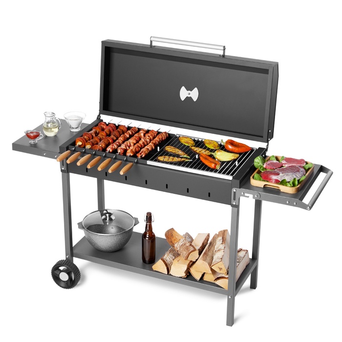 Мангал «МАН 303», 153.5×52×90.1 см, 3 мм, колеса, боковые полки, крышка