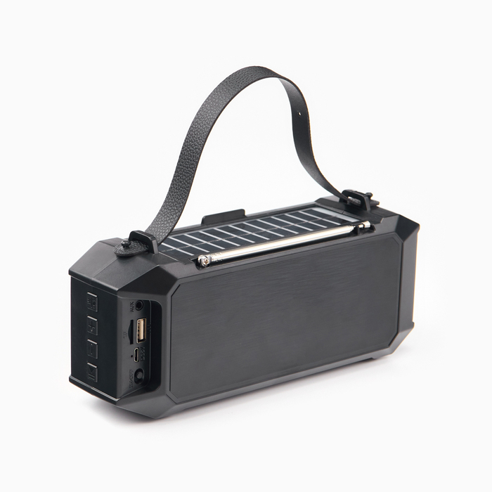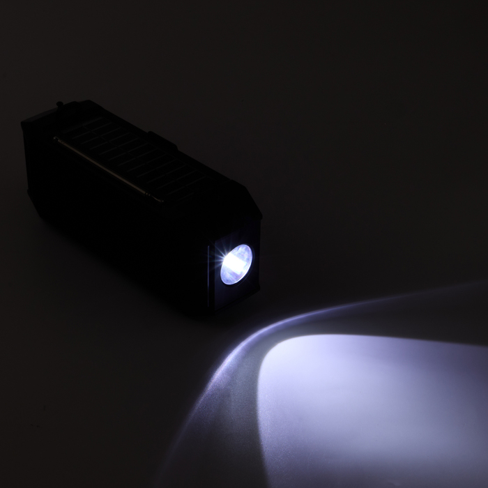 Фонарь аккумуляторный, 5Вт, 1200мАч, IPX5, Bluetooth, AUX, USB, радио, солнеч.бат, чёрный