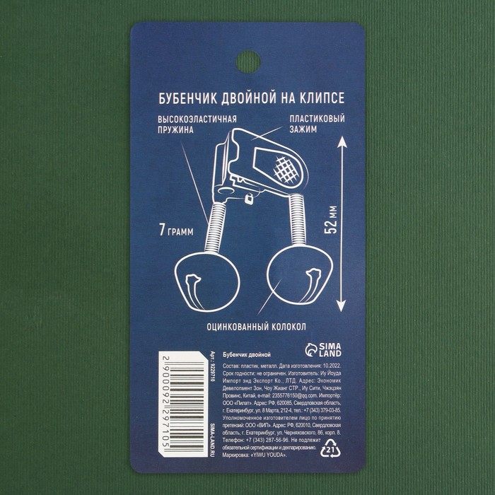 Бубенчик двойной на кольцо удилища