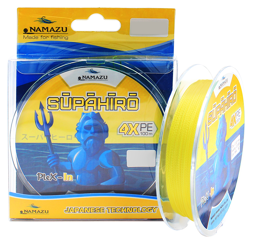 Шнур плетеный Namazu "Supahiro" 4Х, L-100 м, d-0,28 мм, test-17 кг, желтый/100/300/