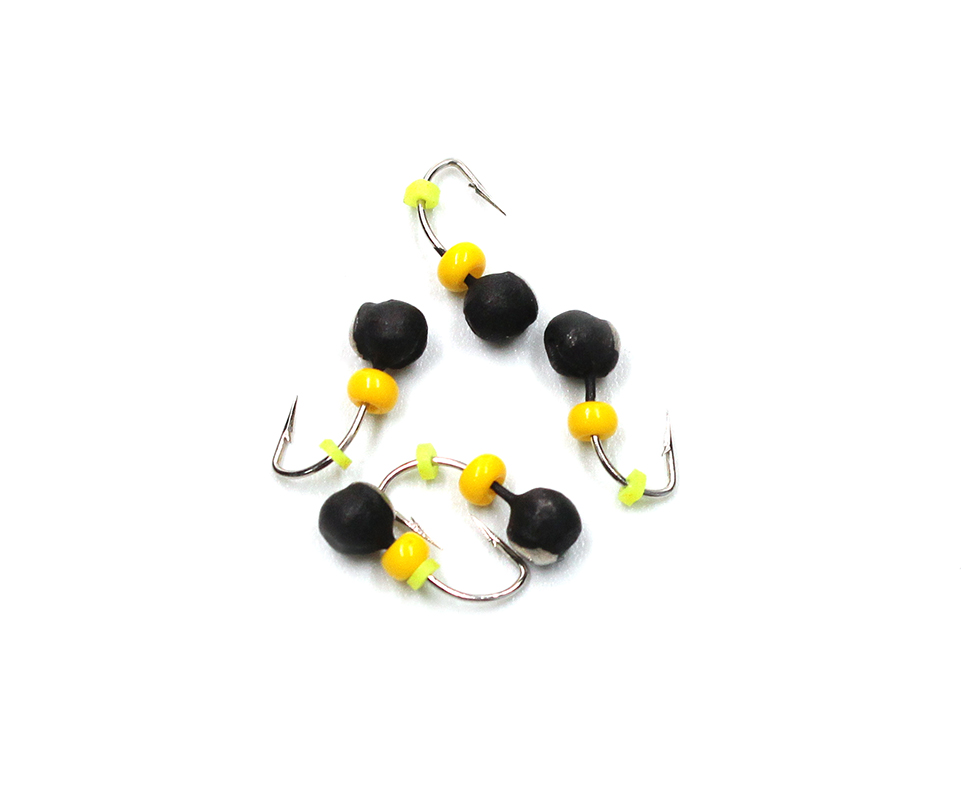 Мормышка вольф"ЯМАН"Дробь с коронкой из никеля, d-4 мм, вес 0,6 г, бисер и кембрик, цв. флуор. желты