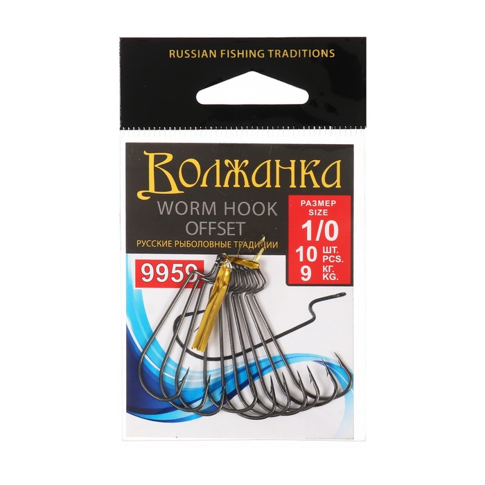 Крючки Volzhanka Worm Offset Hook № 1/0, 10 шт