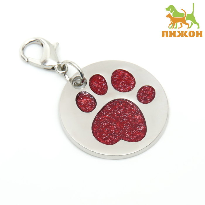Адресник под гравировку "Блестящая лапка" с карабином, 2,2 см, красный