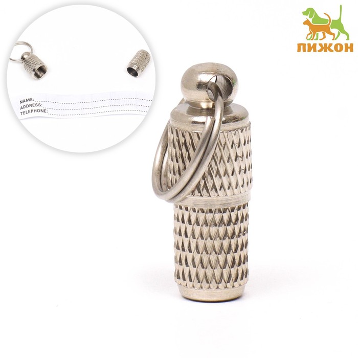 Адресник - капсула под записку, рельефный, 0,8 х 2,1 см