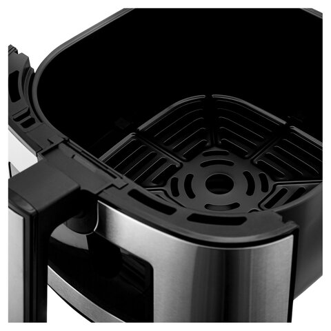 Технология горячей воздушной конвекции обеспечивает равномерное пропекание по всему объёму, а 7 предустановленных программ (фри, пицца, курица, крылья, мясо, креветки, рыба) делают процесс максимально простым — выбирайте режим и наслаждайтесь результатом.