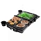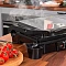 Модель мощностью 2000 Вт обеспечивает быстрый и равномерный нагрев, а ребристая поверхность панелей (279 ? 229 мм) создаёт аппетитные «полоски» на продуктах, как при приготовлении на открытом огне. Панели выполнены из алюминия с антипригарным покрытием, что исключает прилипание продуктов и упрощает очистку — достаточно протереть их мягкой губкой пока они ещё тёплые.