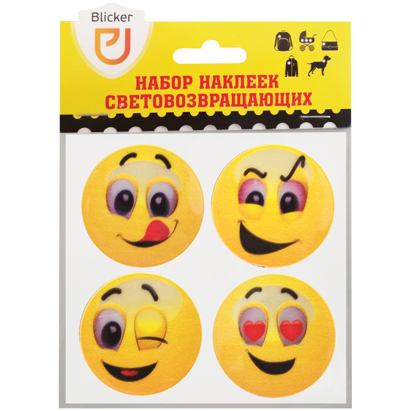 Набор световозвращающих наклеек Blicker "Смайлы цветные", ПВХ, 4шт.