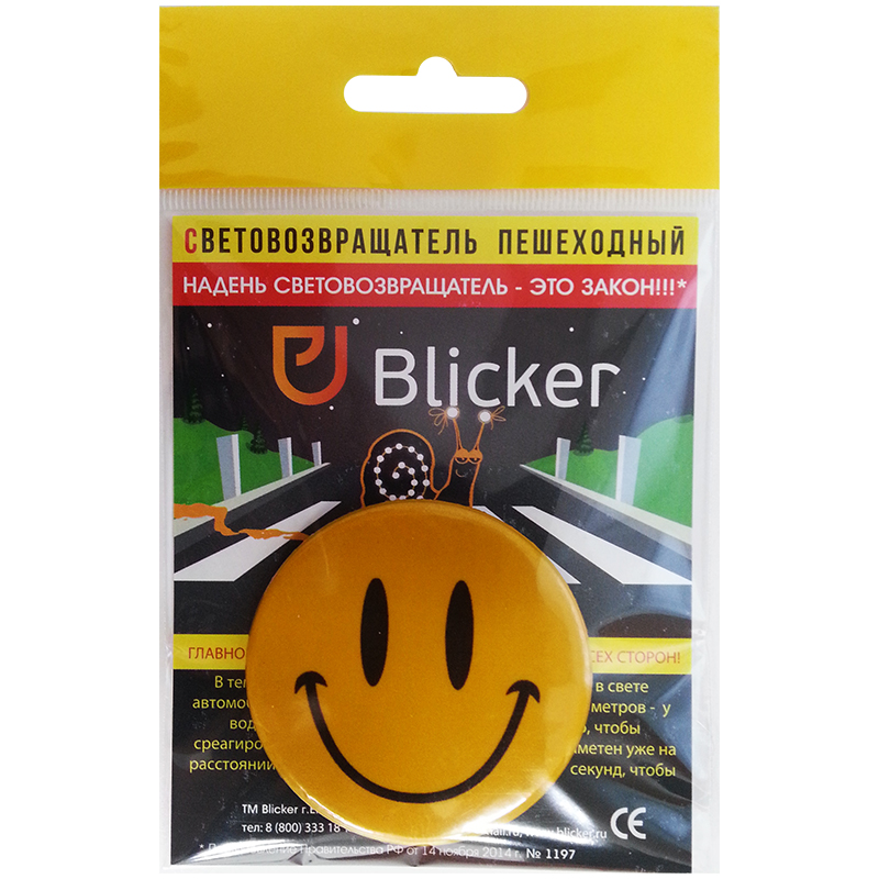 Световозвращающий значок Blicker "Смайлик", 56мм, желтый