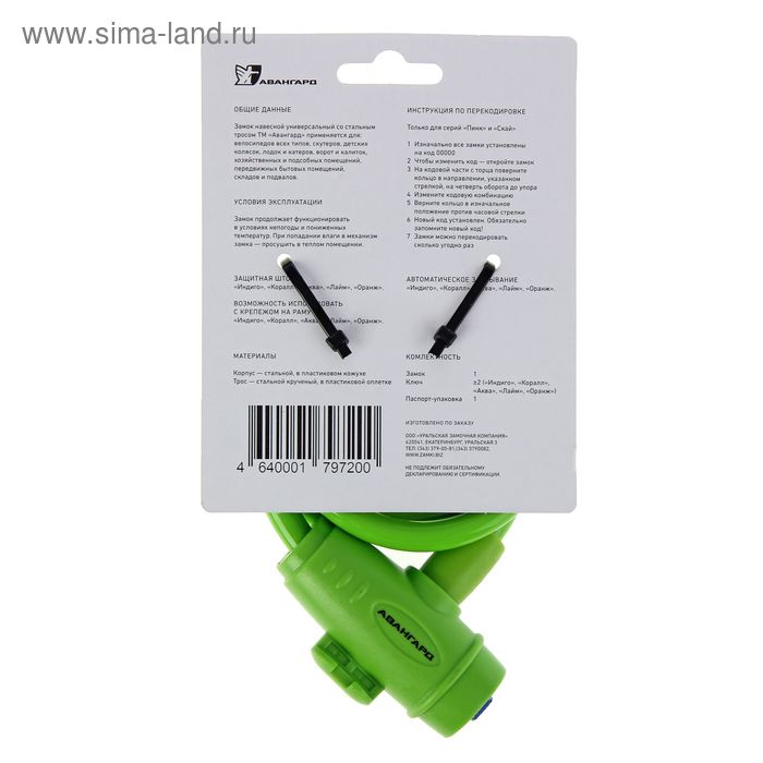 Замок навесной "АЛЛЮР" ВС-Т 8, с тросом L=2000 мм