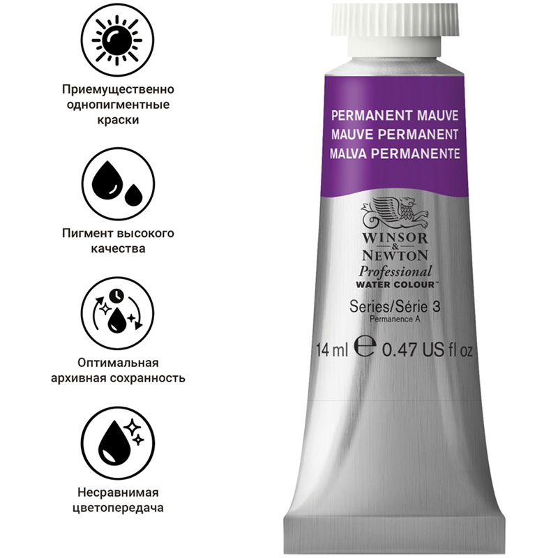 Winsor&Newton Professional – высококачественная профессиональная художественная акварель. Акварель упакована в тубу объёмом 14 мл, цвет – сиреневый перманентный.