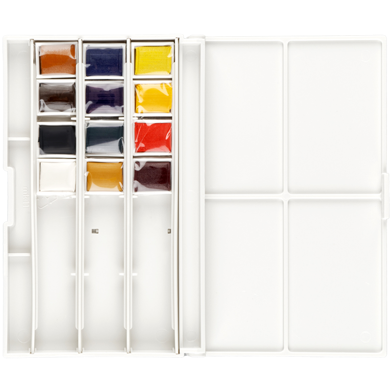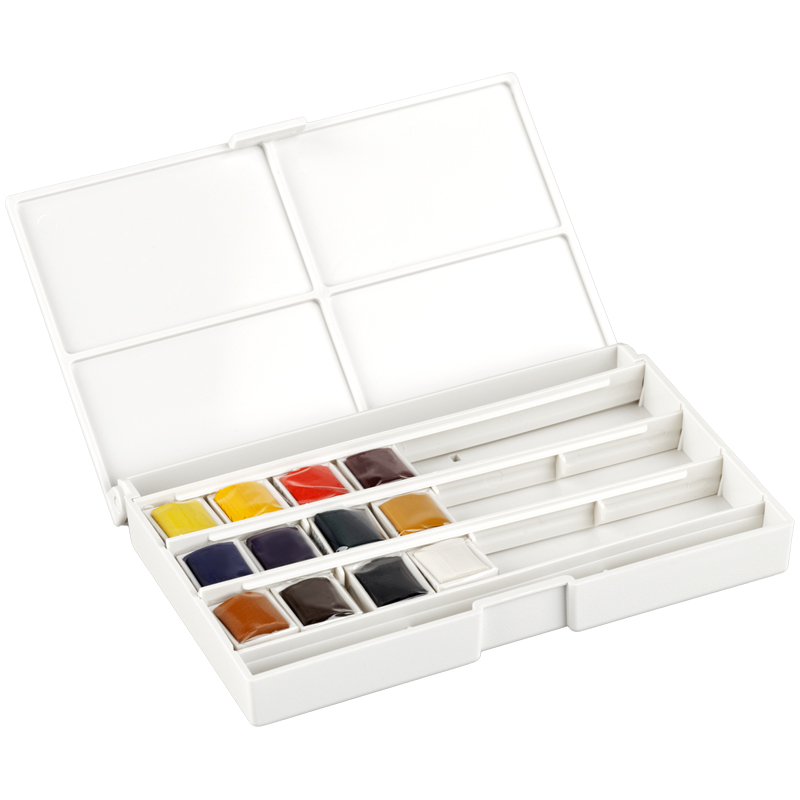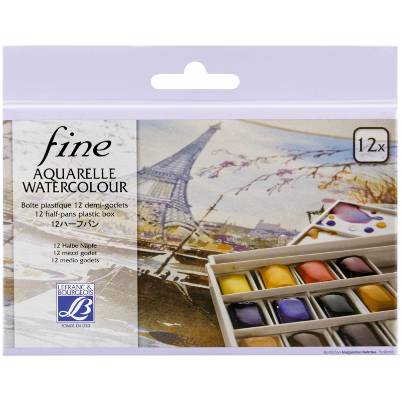 Художественная акварель Lefranc&Bourgeois Fine Watercolours на основе мелкодиспенсерных пигментов подходит не только для начинающих художников, но и для профессионалов. Насыщенные и светостойкие цвета хорошо размывается и легко ложится на бумагу. Все краски хорошо смешиваются между собой, образуя новые оттенки. В данный набор вошло 12 основных цветов в полукюветах. Товар упакован в пластиковую коробку с европодвесом. В упаковке представлена 1 штука.<br/>• Количество цветов: 12;<br/>• Ёмкость: кювета.